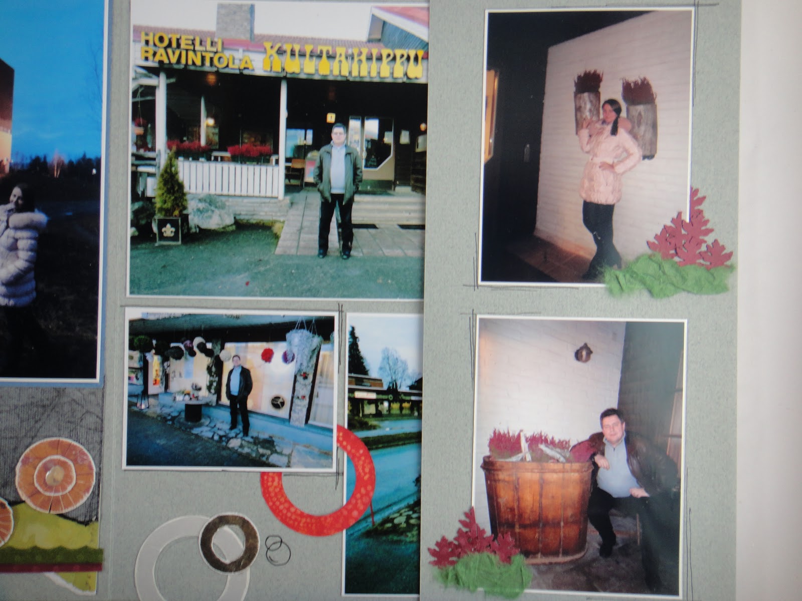 поскольку я живу в Мурманске, совсем рядышком наши соседи - Финляндия и Норвегия. Как-то мои близкие съездили на 2 дня в ближайший финский городок Ивало, привезли массу впечатлений и фото. Мне захотелось сделать им альбомчик, но необычный. Перерыла кучу своих записей и нашла идею у Триши Моррис как из одного листа картона (у меня это лист для акварели) сделать полноценный альбомчик. Только у Триши размер 15*15, а я сделала 20*20, соответственно пересчитав все размеры. Само собой еще использовала разную бумагу, мои любимые штампы, готовые и самодельные цветы и разные украшалки. Фотографировать было не очень удобно, раскладывается он широко, но я старалась изо всех сил :))) Смотрите, что получилось...